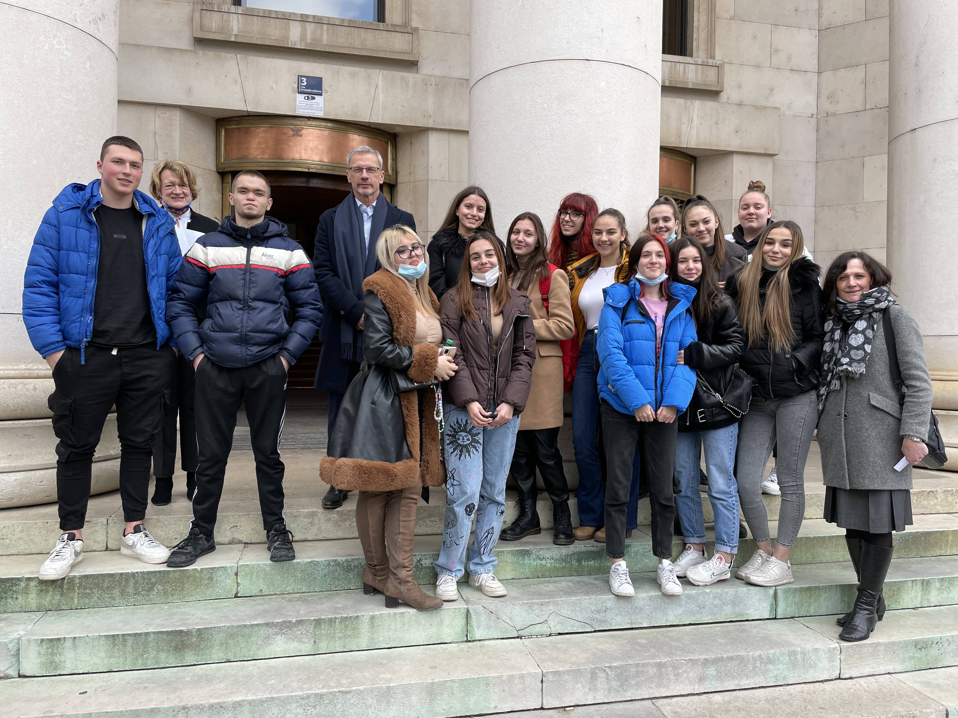 POSJET UČENIKA ZAVRŠNIH RAZREDA DRUGE EKONOMSKE ŠKOLE HRVATSKOJ NARODNOJ BANCI Dana 10. ožujka 2022. učenici četvrtih razreda Druge ekonomske škole u sklopu terenske nastave iz predmeta Bankarstvo i osiguranje posjetili su Hrvatsku narodnu banku u pratnji profesorica Gordane Laljak, Natalije Volarić i Ane Lasić. Dočekao nas je guverner HNB-a gospodin Boris Vujčić, srdačno nas je pozdravio te se fotografirao sa učenicima i profesorima. Za učenike je u glavnoj dvorani nekadašnje burze organizirano predavanje na temu „Uvođenje eura u Republici Hrvatskoj“. Nakon predavanja u trajanju od 45 minuta učenici su imali priliku postavljati pitanja predavačima o navedenoj temi. Nakon toga, učenici su odslušali kratko predavanje o dvorani burze te o povijesti zgrade Hrvatske narodne banke i njenom arhitektu Viktoru Kovačiću. Zgrada je spomenik kulture nulte kategorije iz razdoblja hrvatske moderne. Za kraj su učenici dobili prigodne darove od organizatora posjeta i puni dojmova završili svoj posjet. Ovom prilikom zahvaljujemo djelatnicima HNB-a na organizaciji i toplom prijemu.