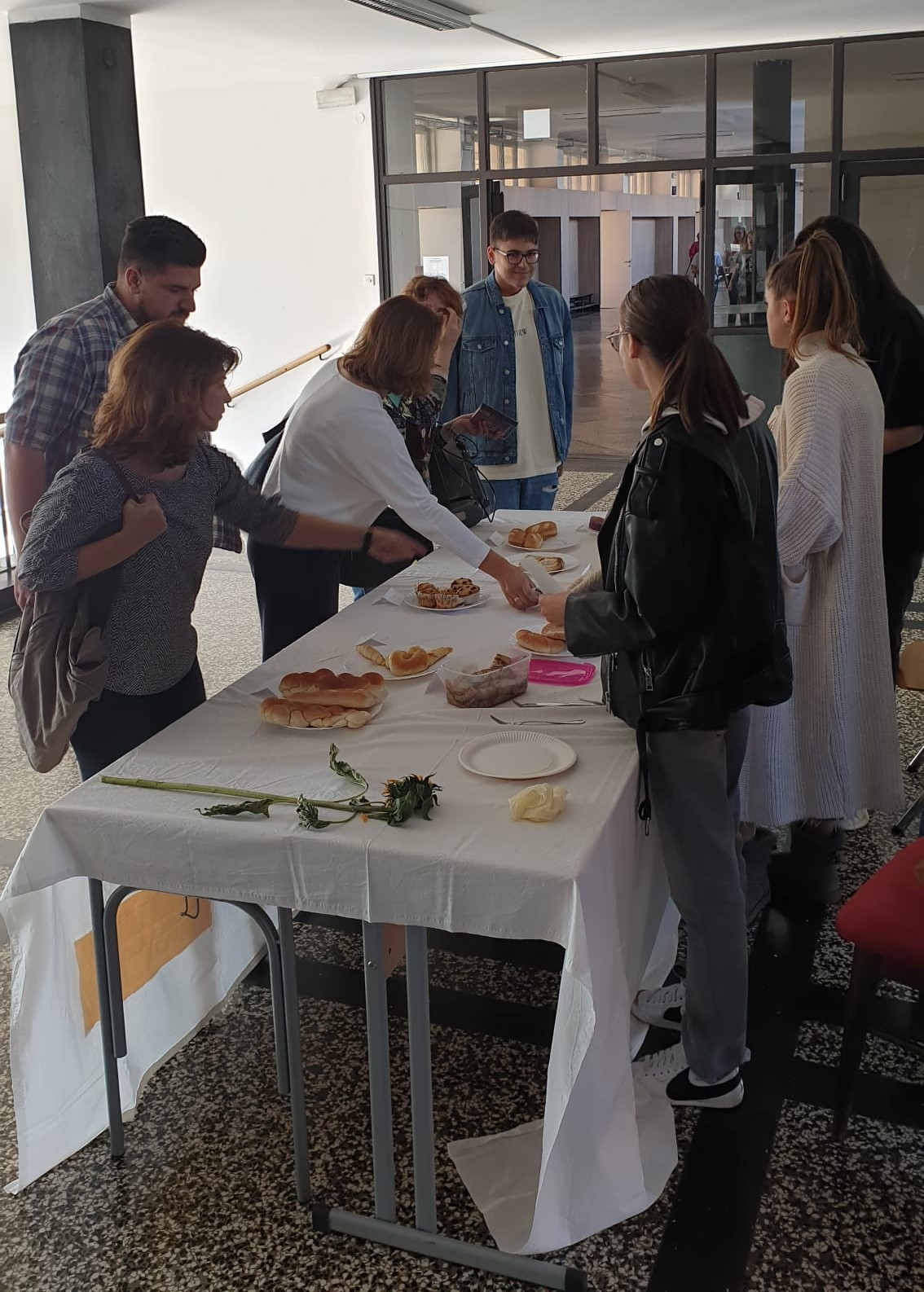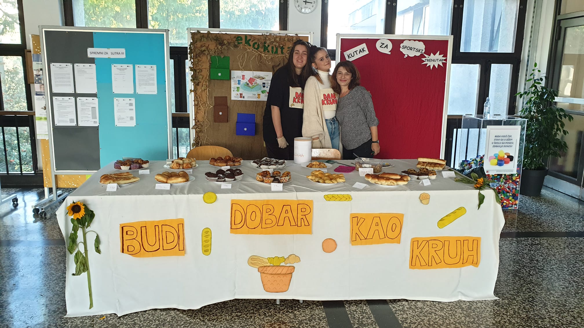 BUDI DOBAR KAO KRUH Povodom manifestacije ''Dani kruha'' i ove školske godine humanitarno smo djelovali kroz doniranje i prodaju pekarskih proizvoda. U akciji prikupljanja sudjelovali su učenici svih razreda s profesorima pod vodstvom profesorice Fanice Ivčević . S prikupljenim sredstvima kupili smo živežne namirnice za Udrugu Savao, koja nastoji pomoći ljudima u potrebi i na rubu društva. Naši su učenici zajedno s profesorima odnijeli kupljene namirnice te su sudjelovali u molitvi i u pripremi obroka za beskućnike. Učenici su izrazili svoje zadovoljstvo susrećući se s drugim volonterima. Susret je bio obogaćujuć kako za učenike tako i za profesore. Na ovaj smo način još više osvijestili kako je bitno pomagati jer ima puno ljudi koji su gladni, bolesni i zaboravljeni od svih.