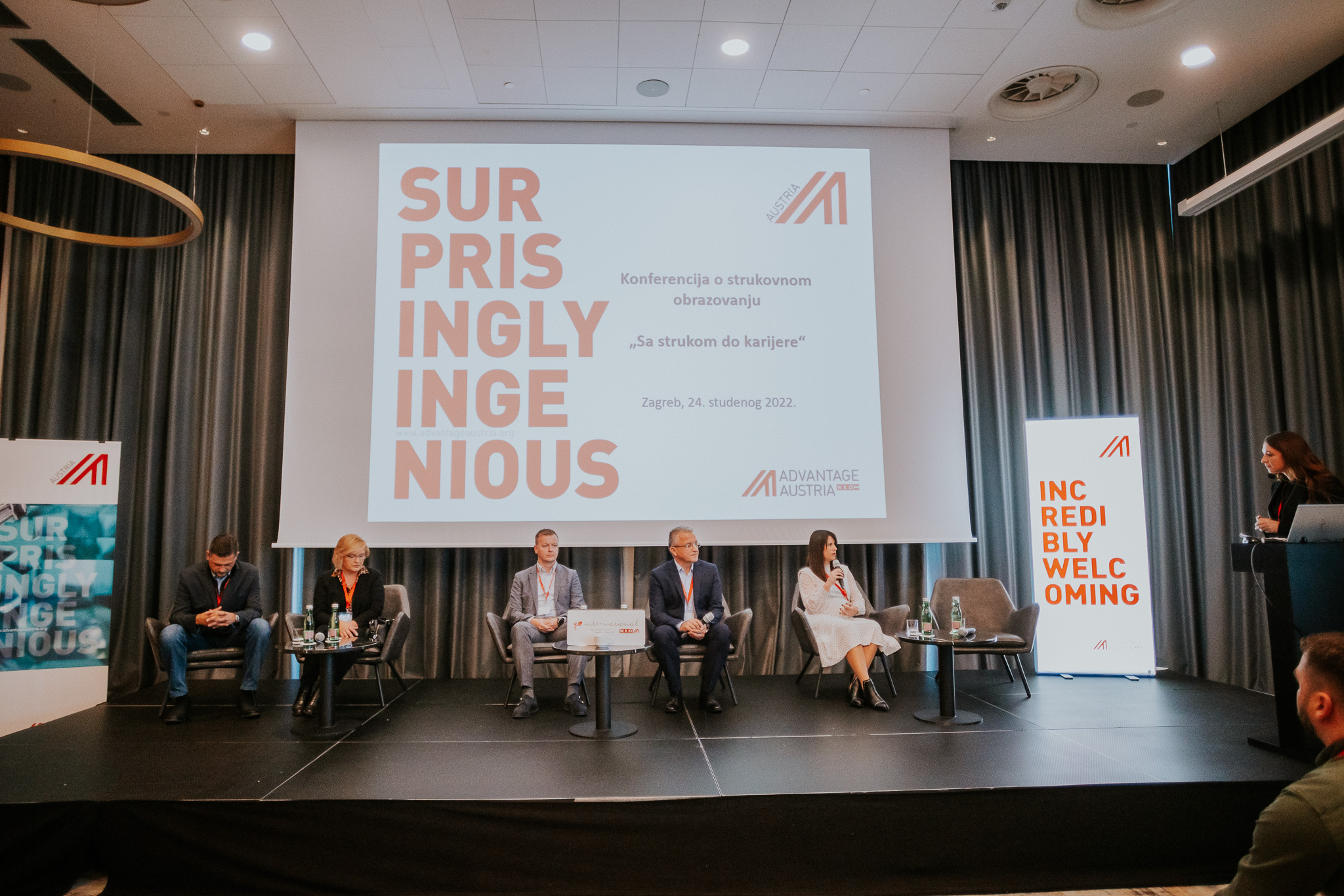 Inicijativa 'Nastavnici u poduzeća' pokrenuta na inicijativu Trgovinskog odjela Austrijskog veleposlanstva u Zagrebu i u suradnji s ASOO bila je tema ovogodišnje konferencije o strukovnom obrazovanju, a o svojim iskustvima kao i načinu na koji je znanje stečeno na praksi kod poslodavca primijenila u učionici, govorila je i nastavnica Maja Sedlar. U nastavku donosimo fotografije i link na članak o održanoj konferenciji.