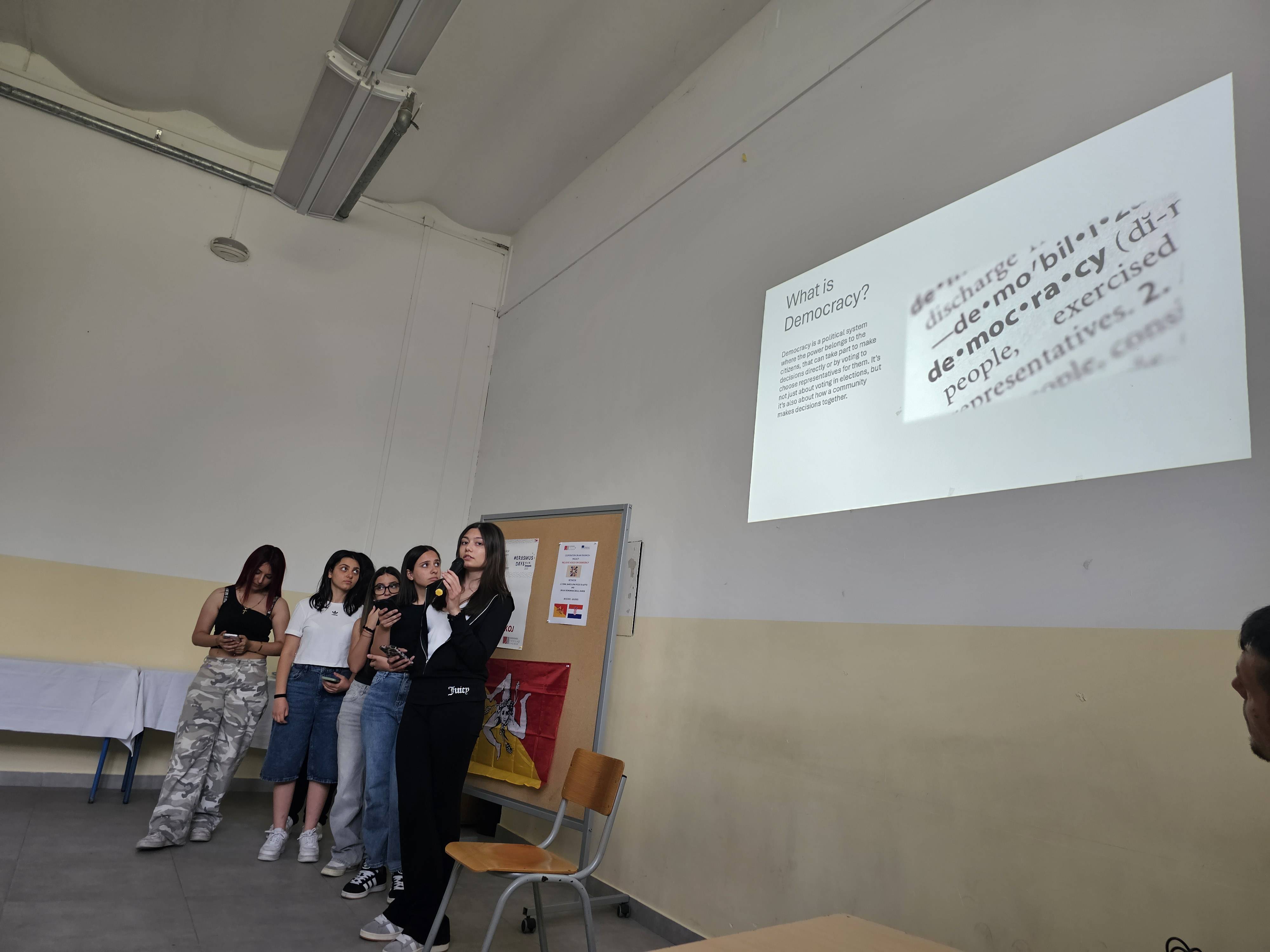 U sklopu Erasmus+ projekta ugostili smo partnersku školu iz Italije (Sicilija). 4. lipnja 2025. godine predstavljeni su rezultati projekta “Inclusive Voices for Democracy; koji je nastao u suradnji sa školom ITET. E. Fermi sa Sicilije. Talijanski i hrvatski učenici istražili su i prezentirali političku povijest svoje države do nastanka demokracije kao i važnost inkluzije manjina.